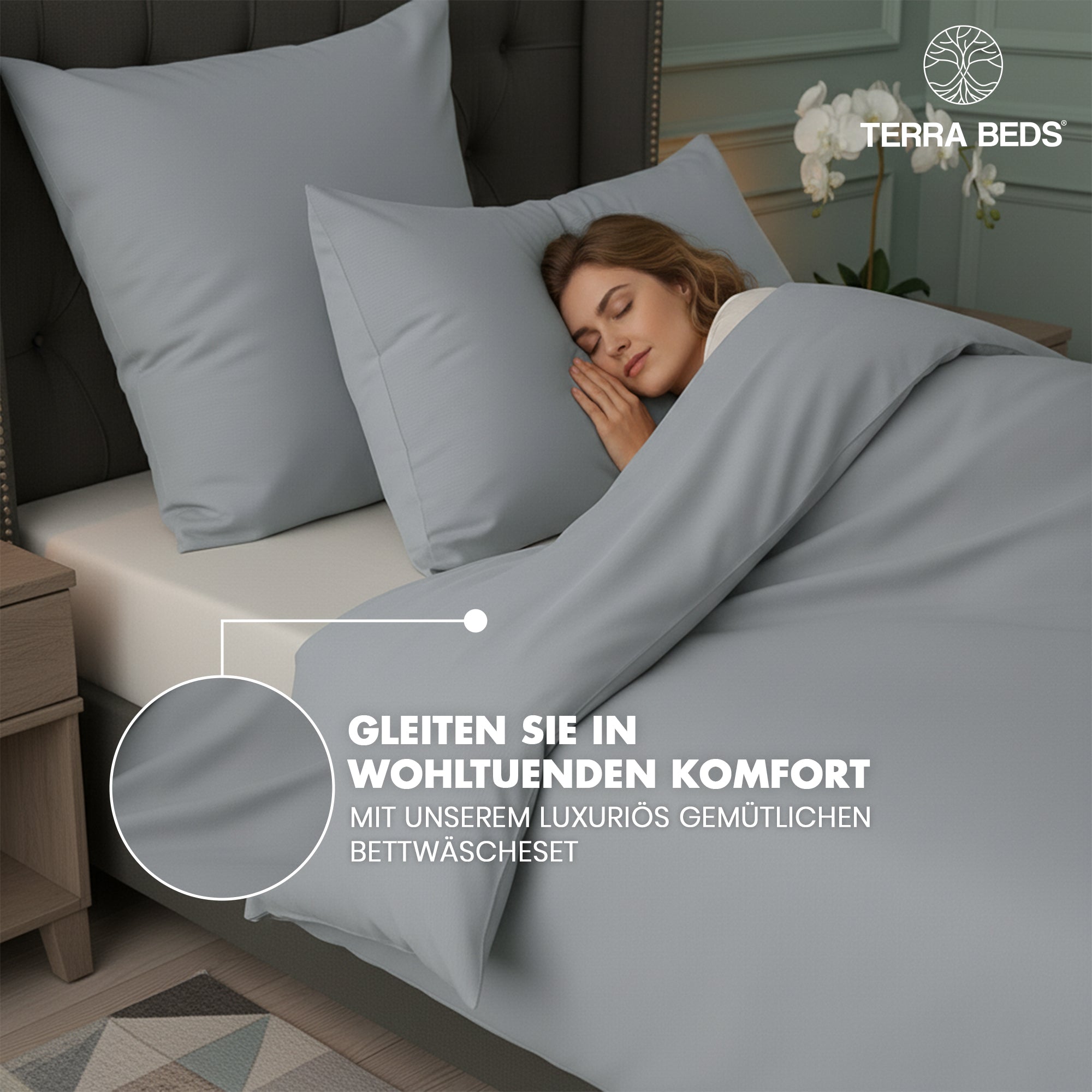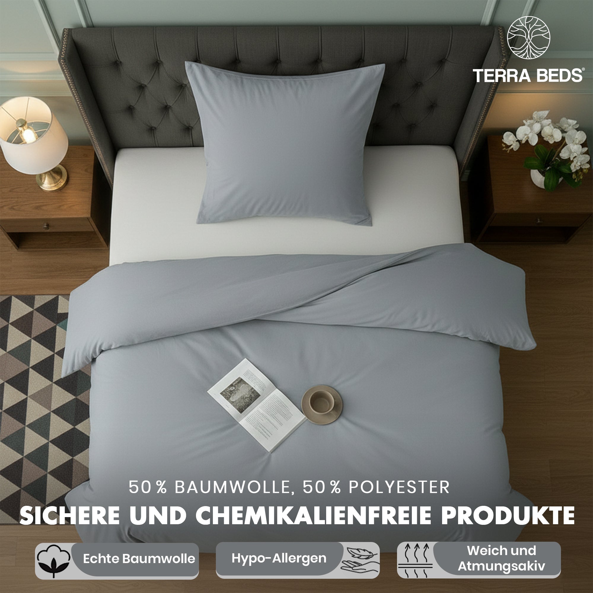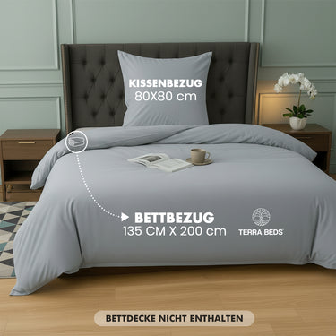 Terra Beds Bettwäsche 135 x 200 cm set – Weicher Bettbezug aus Polyester-Baumwolle mit Kissenbezug 80 x 80 cm – Atmungsaktive, knitterfreie und pflegeleichte Bettwäsche – Anthrazit